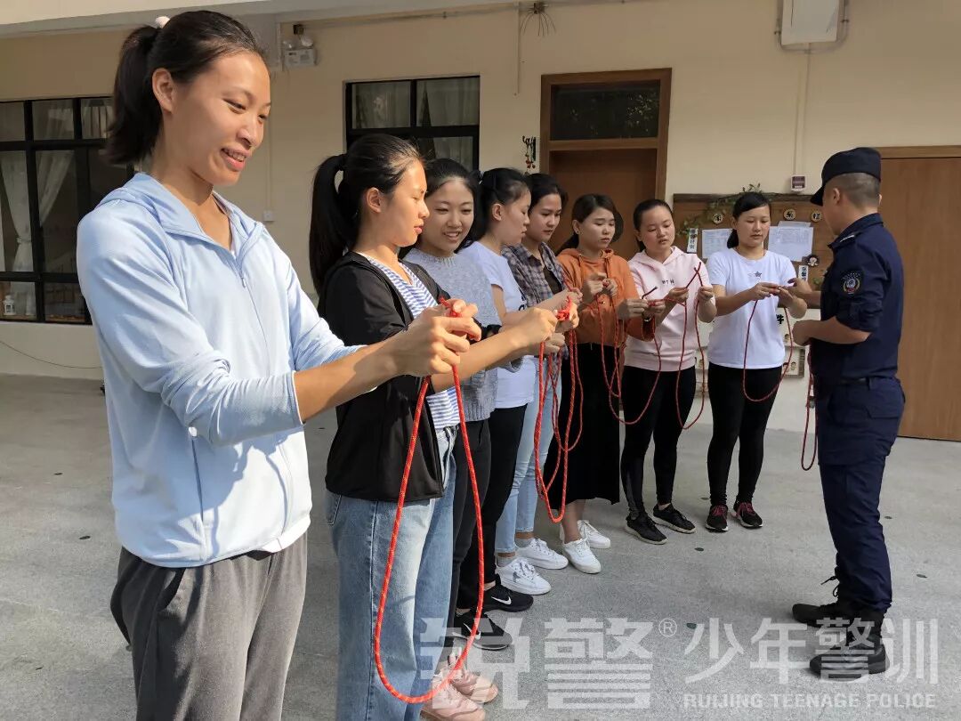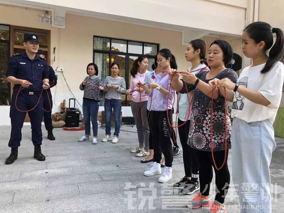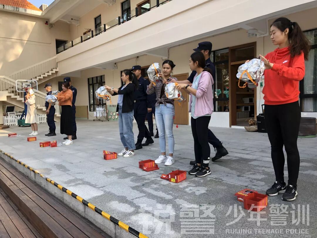 但逃生绳索操作相对简单,适合于紧急逃生。小朋友们专心致志地听教官的讲解。
