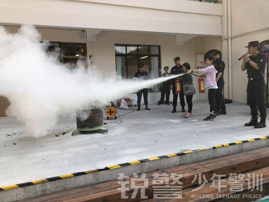 所以此次安全教育,教官现场亲自指引教师们演示灭火器的使用。