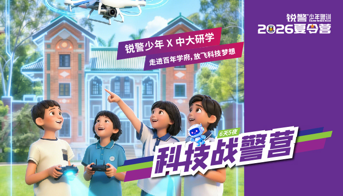锐警少年警训项目致力于打造“营地教育+安全教育”领航品牌,以专业的警务特色课程体系,为青少年提供涵盖安全教育、警训教育、爱国主义教育、感恩教育及研学游等多主题的课程内容。